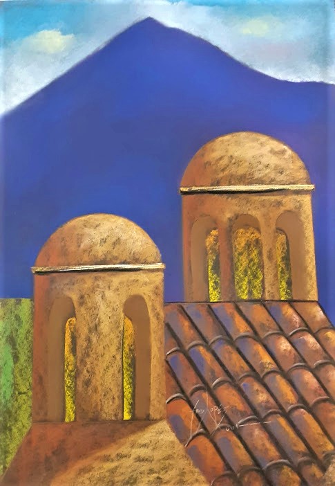 Dos cúpulas y ocho filas de tejas frente al volcán No.1